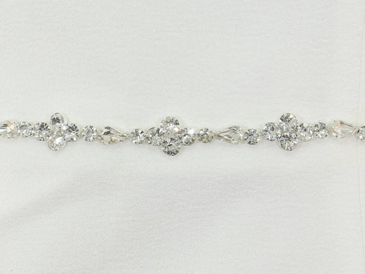 Thin Crystal Bridal Sash Belt with Satin Ribbon