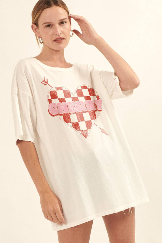 Cherry Heart Vintage Oversized Graphic Tee