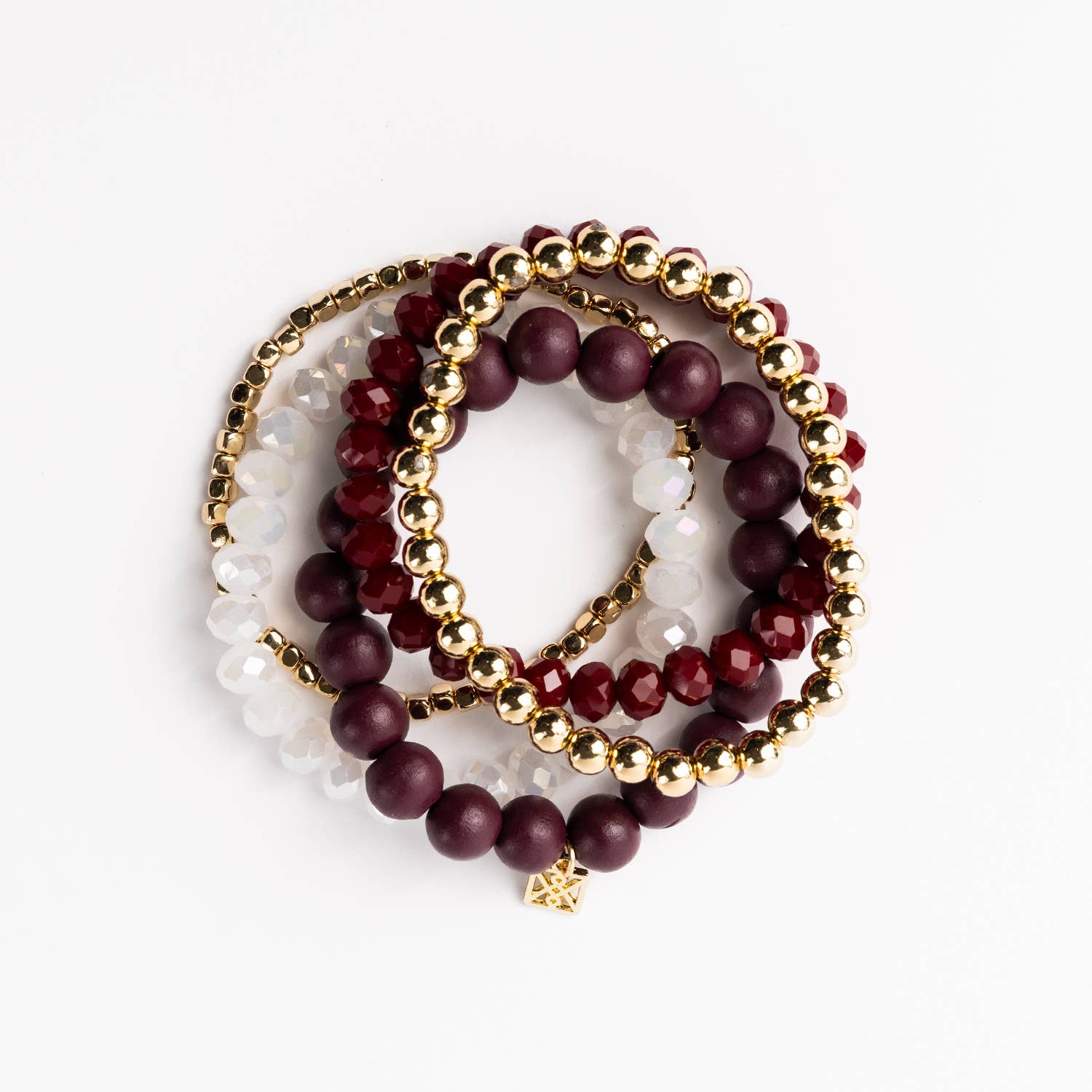 Our Bracelet Mandy in Maroon & White is a testament to Michelle McDowell's vision of inspiring beauty in every woman. The beaded bracelet, a mix of modern materials with a classic design, is a timeless yet bold accessory that can elevate your everyday style. It's more than just a bracelet, it's a piece of jewelry that carries the warmth, class, and elegance reminiscent of the designer's grandmother. This versatile and fresh design is always on-trend, perfect for every season and occasion. Feel beautiful and confident with this exquisite piece.