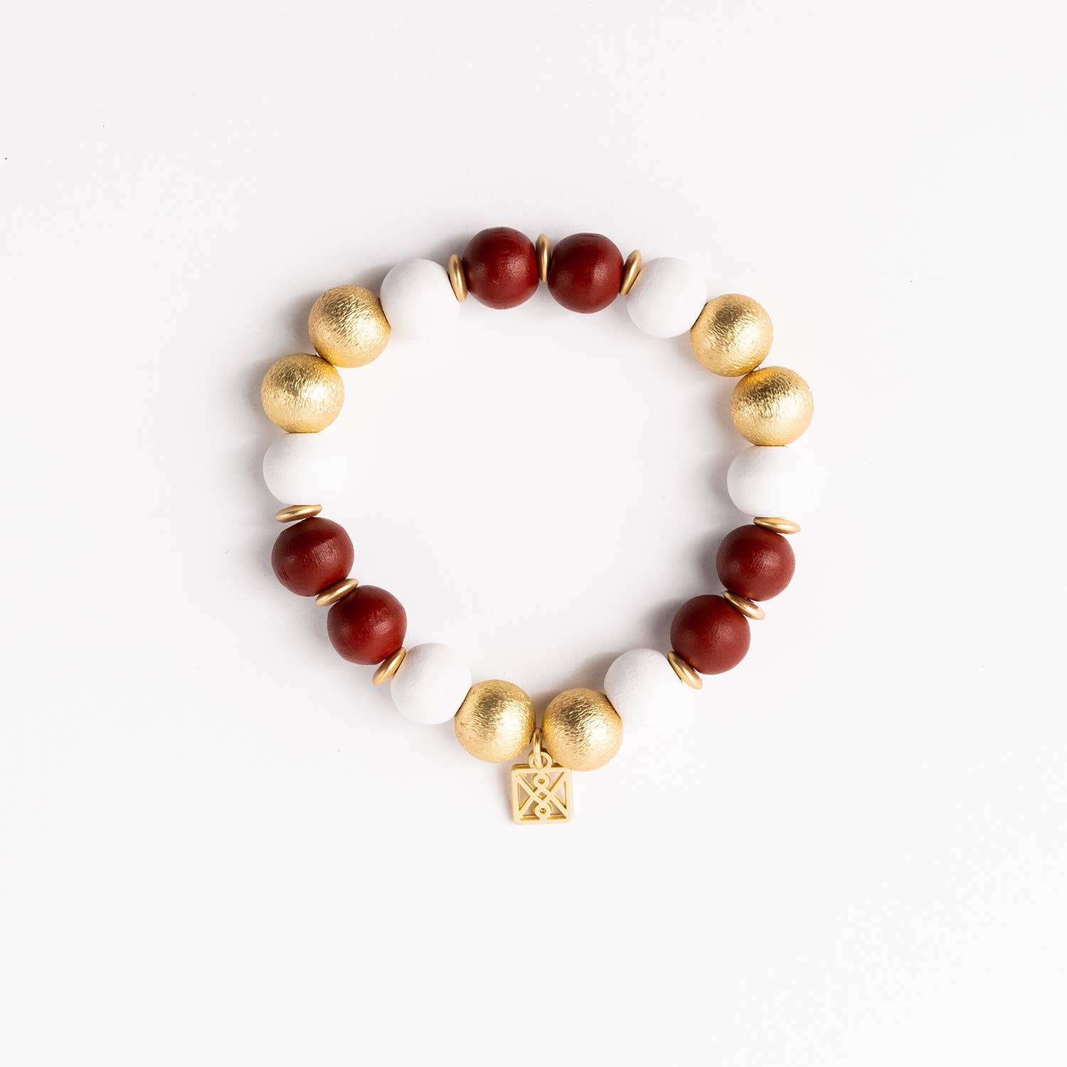 Embrace a touch of elegance with the Nori Crimson & White Bracelet from Michelle McDowell. This beaded bracelet is a testament to modern versatility, fresh designs, and the timeless yet bold aesthetic that the brand embodies. It's an on-trend piece that elevates everyday style, blending modern materials with classic design. Inspired by the joy of dressing up and the confidence that comes with feeling beautiful, this bracelet is more than just an accessory - it's a statement. Enjoy the on-top-of-the-world feeling each time you adorn your wrist with this stunning piece.