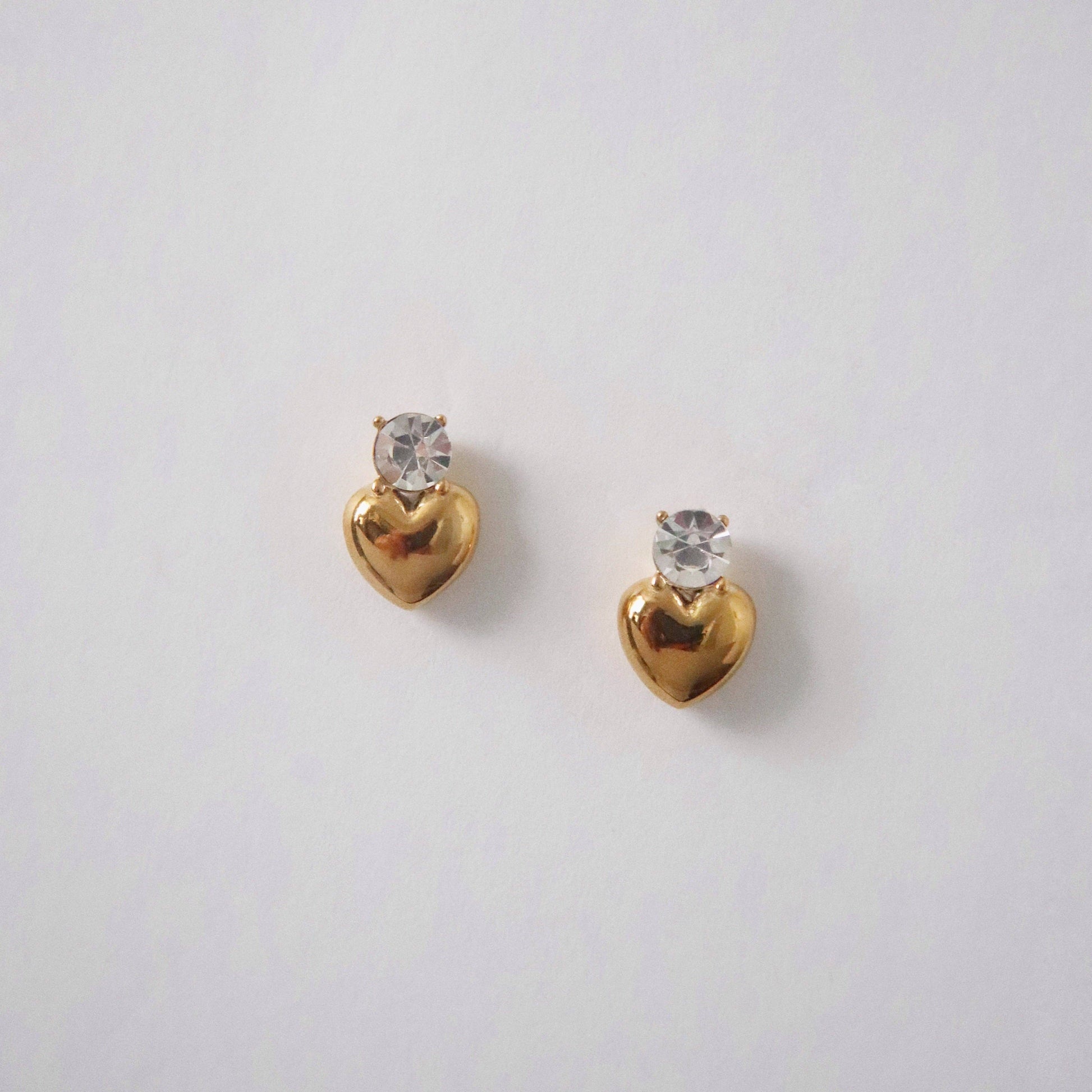 These chic and elegant heart earrings with a cubic zirconia stone are perfect for adding a touch of love and glamour to any outfit.